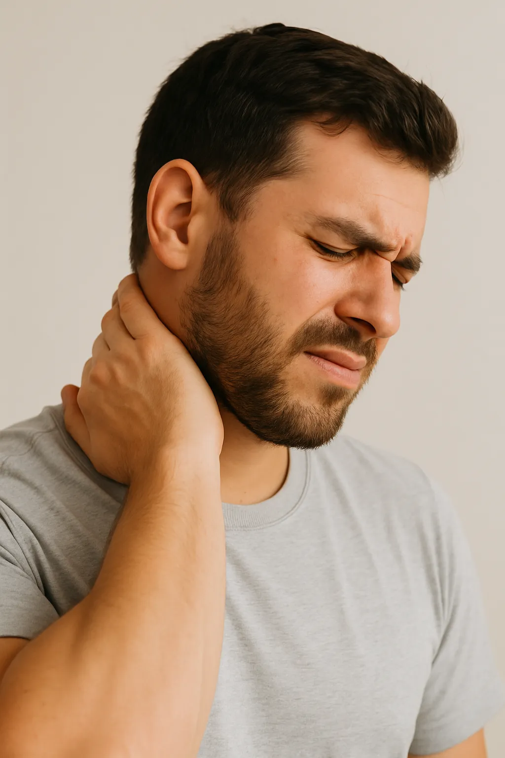 Persistent stiffness or tension, especially in the involved area where the issue is located.